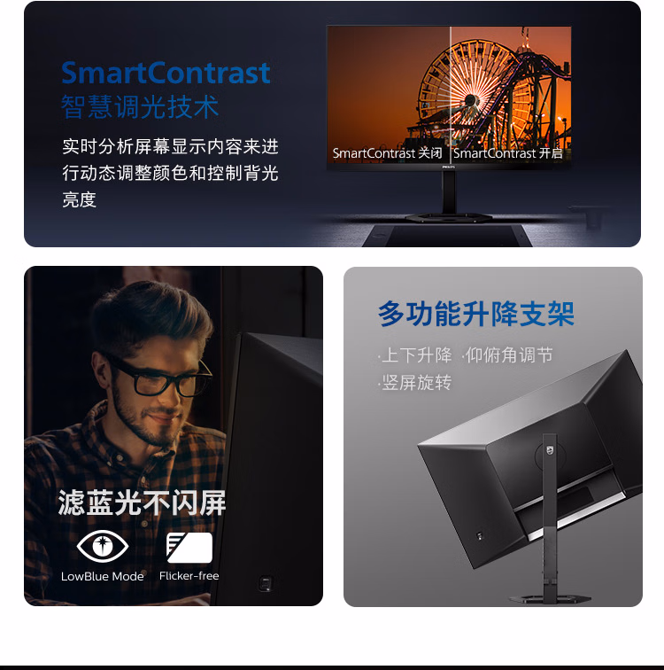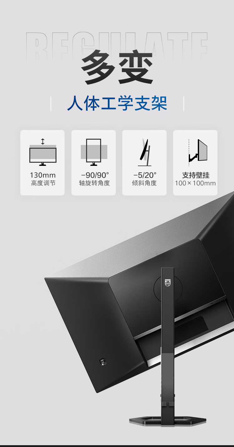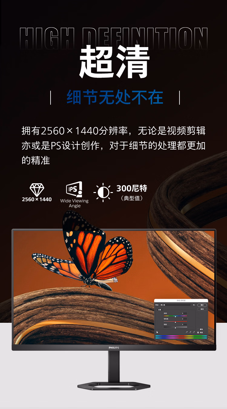 飞利浦 27英寸 2K IPS Type-C65W投屏 高色域 护眼低蓝光 旋转升降 设计办公显示器 娱乐显示屏 27E1N5600E 自营