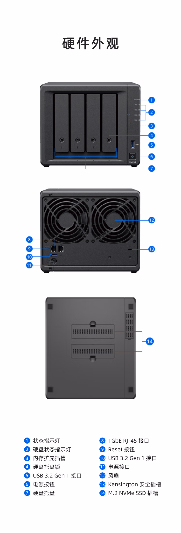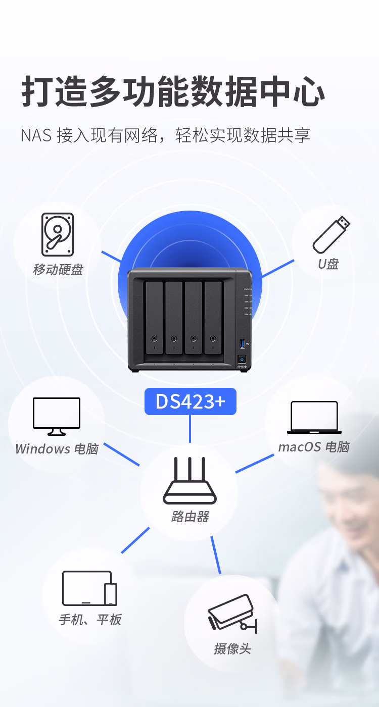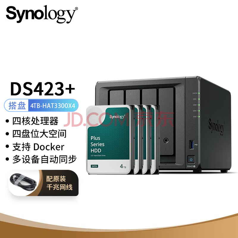 群晖(Synology)DS423+ 搭配4块群晖 Plus系列 HAT3300 4TB硬盘 套装 自营