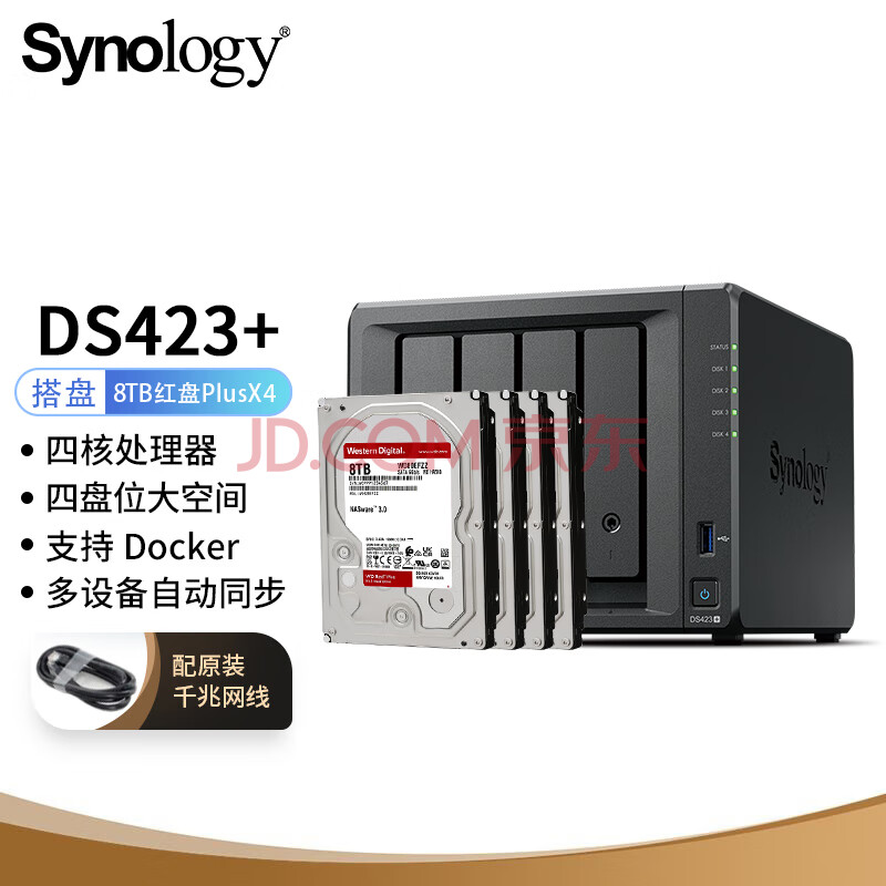 ¥12849.00群晖(Synology)DS423+ 搭配4块西数(WD) 8TB 红盘Plus WD80EFZZ硬盘 套装