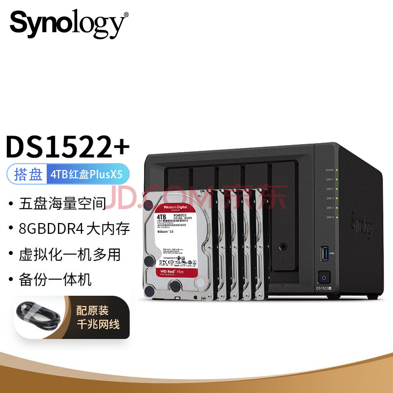 群晖(Synology)DS1522+ 搭配5块西数(WD) 4TB 红盘Plus WD40EFPX硬盘 套装 自营