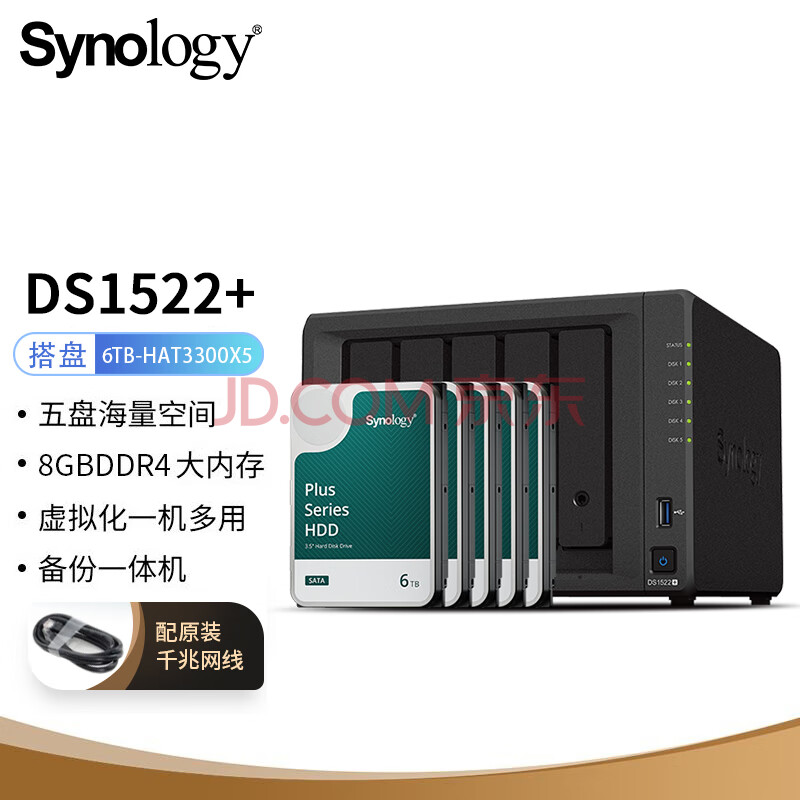 ¥899.00群晖(Synology)DS1522+ 搭配5块群晖 Plus系列 HAT3300 6TB硬盘 套装