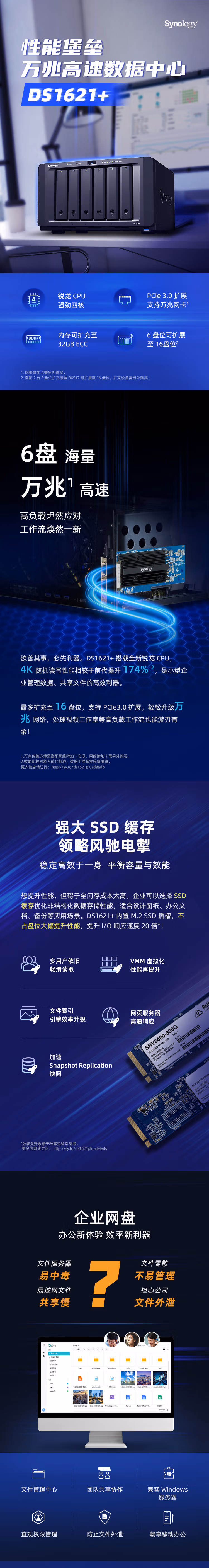 群晖(Synology)DS1621+六盘位NAS网络存储服务器 备份一体机私有云网盘(标配无硬盘 ) 自营