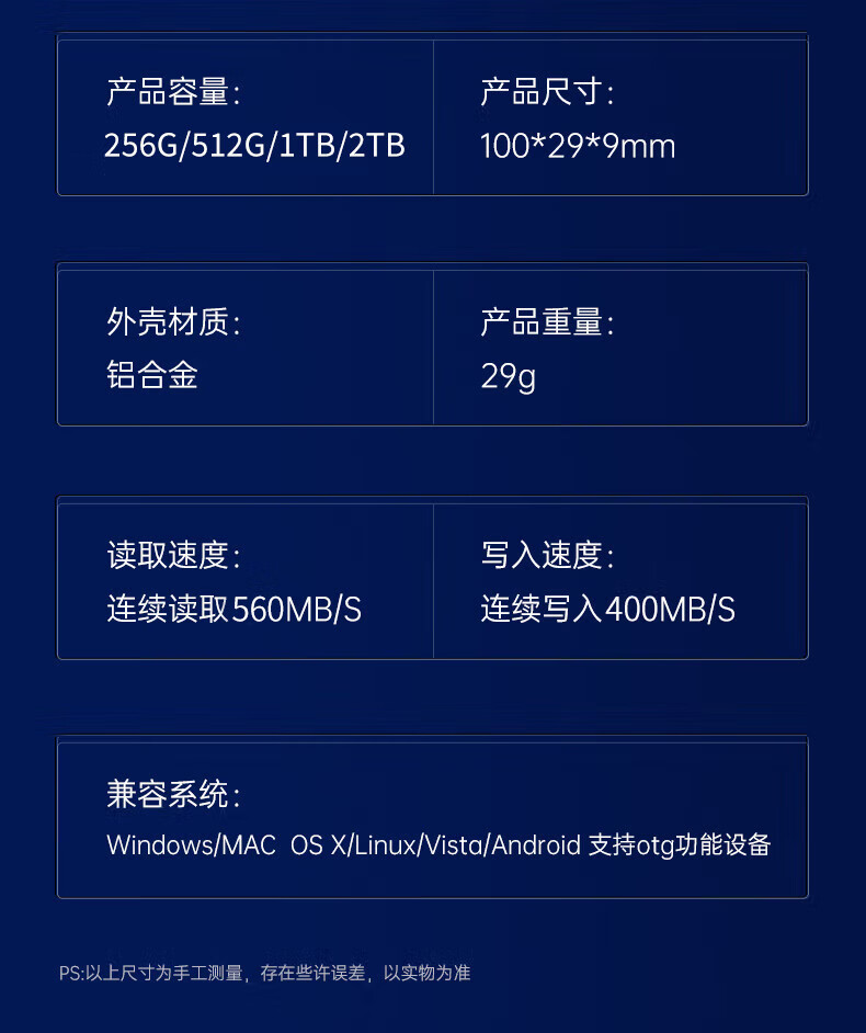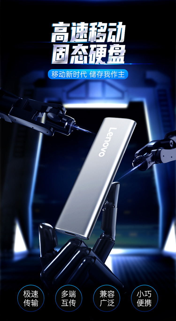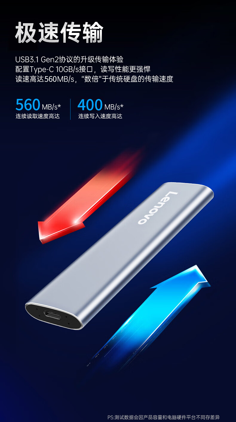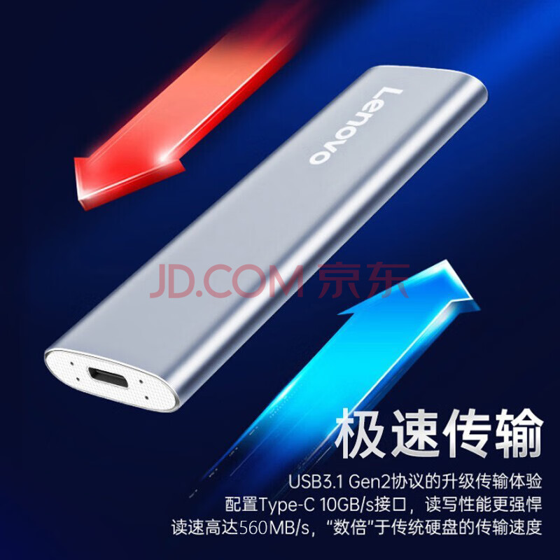 ¥509.00联想(Lenovo)2TB 移动硬盘固态(PSSD)Type-c USB3.1接口 逐星系列 ZX1 银色