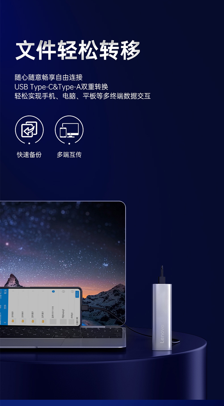 ¥649.00联想(Lenovo)1TB 移动硬盘固态(PSSD)Type-c USB3.1接口 逐星系列 ZX1 银色