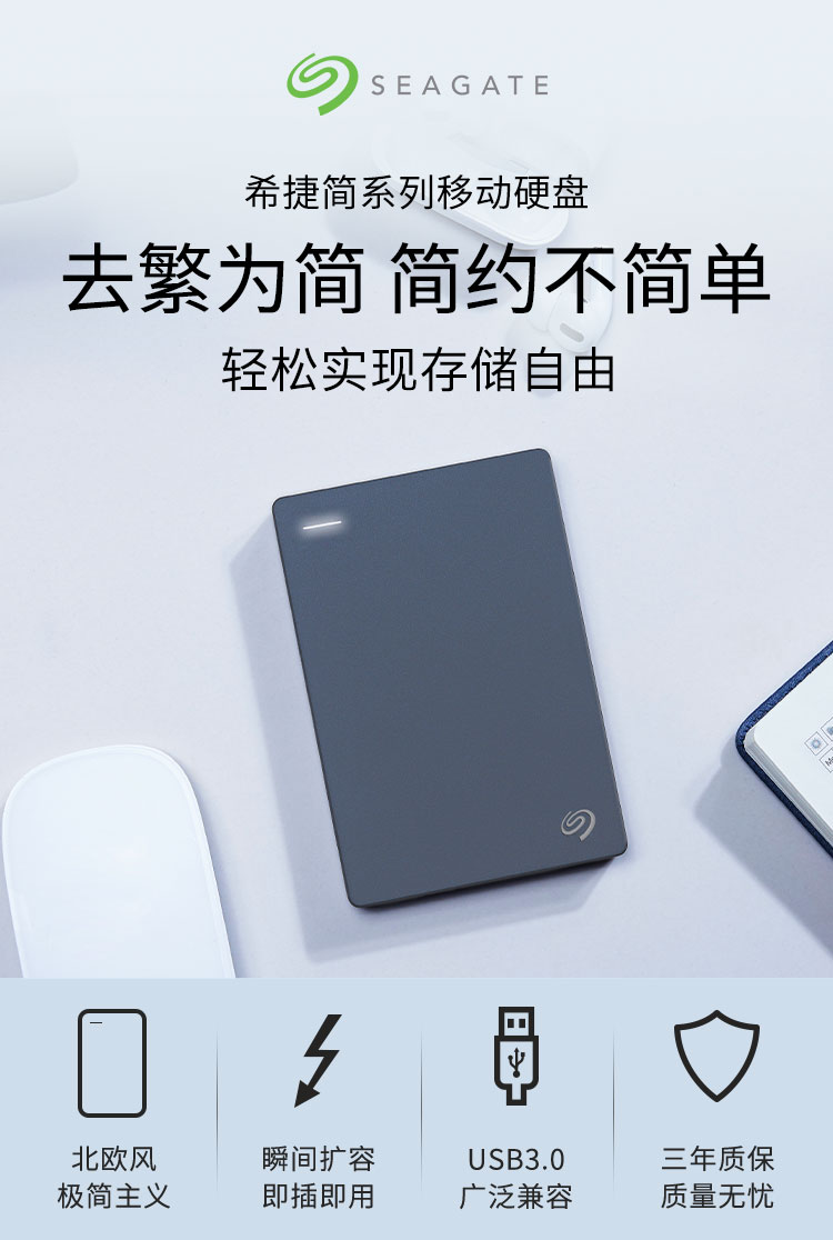 ¥909.00希捷(Seagate) 移动硬盘 2TB USB3.0 简 2.5英寸 机械硬盘 高速 轻薄 便携 兼容PS4