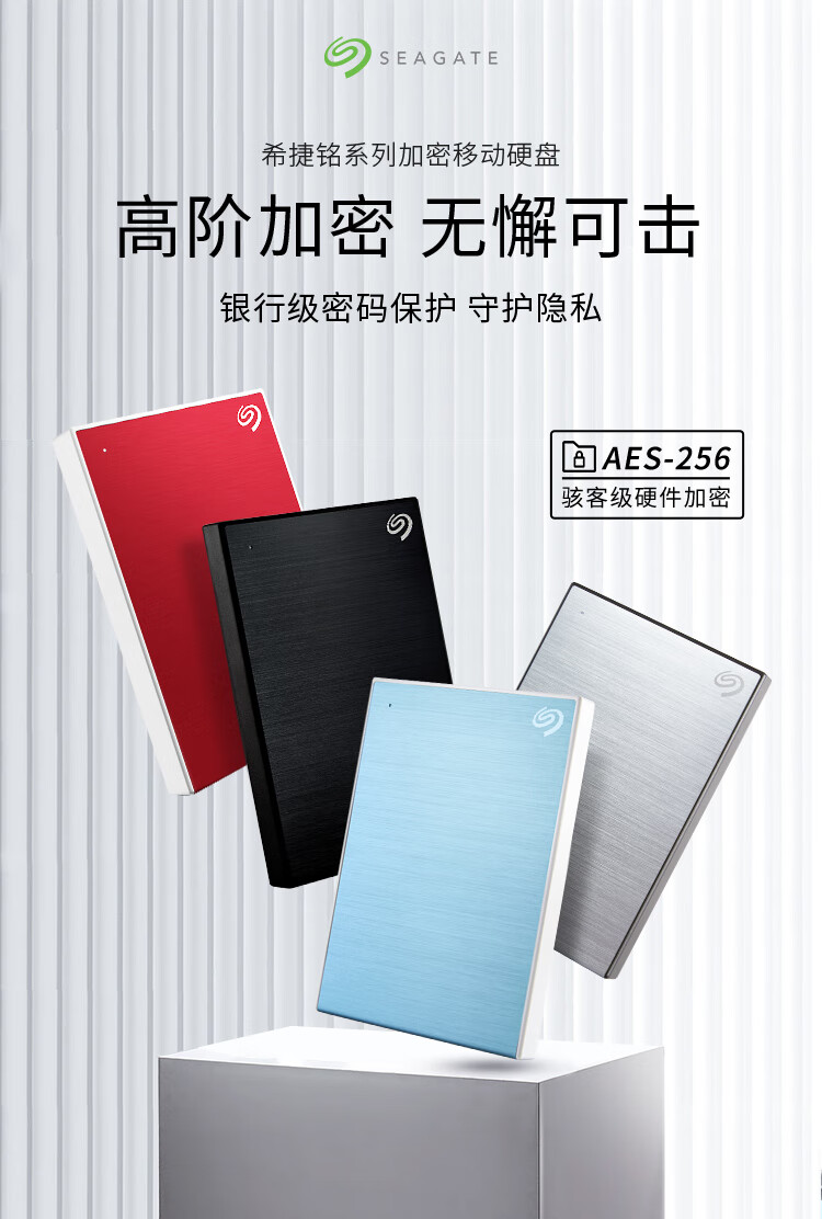 希捷(Seagate) 移动硬盘2TB 加密 USB3.0 希捷铭 2.5英寸 机械硬盘 金属外观兼容Mac 红 原厂数据恢复服务 自营