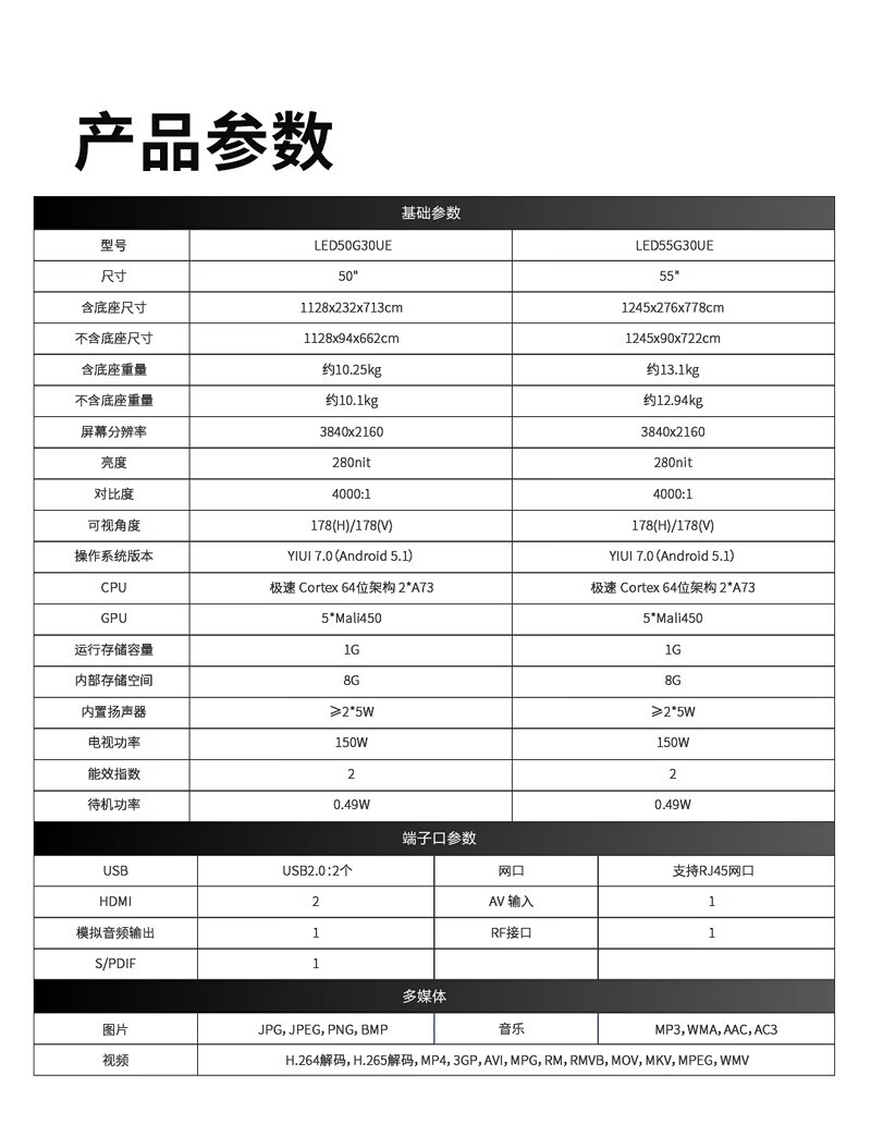 ¥1688.00康佳康佳55英寸4K超高清超窄边框 智能商用工程电视机 AAA级HDR纯色硬屏 开机直达 LED55G30UE