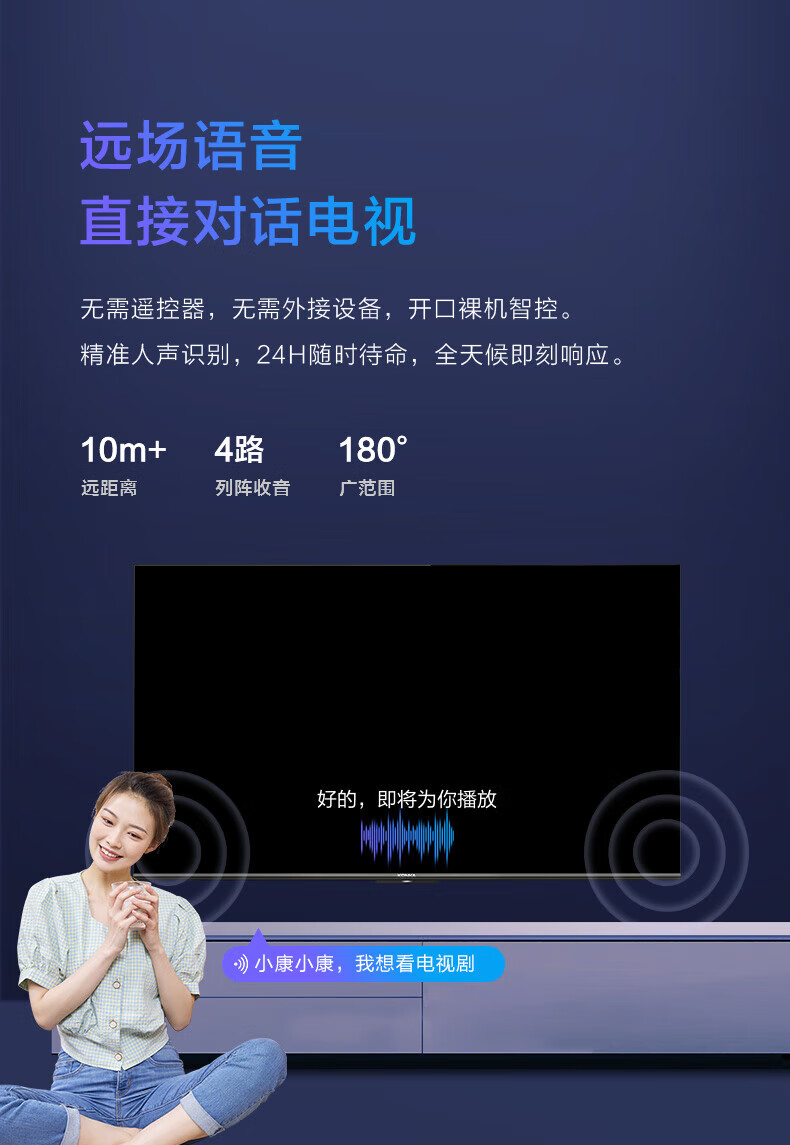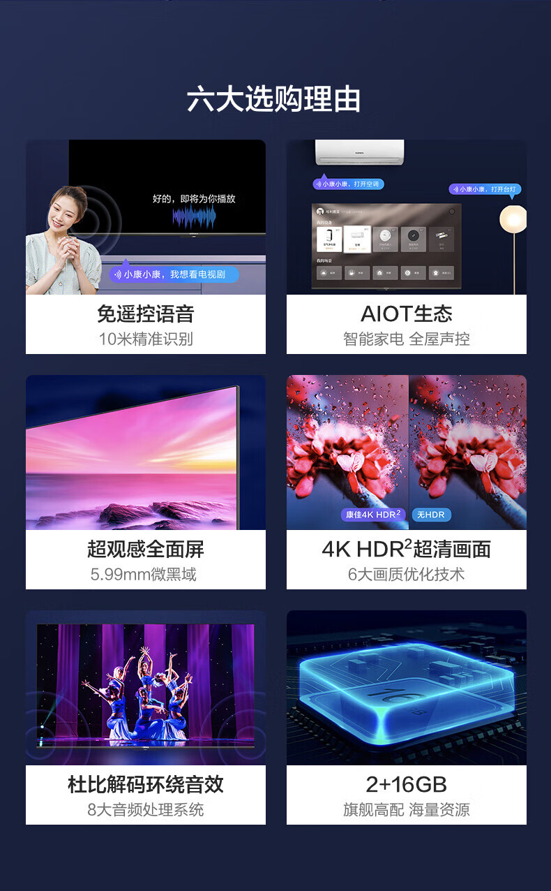 ¥6899.00康佳(KONKA) 4K高清 全面屏金属机身 2+16GB AI智慧屏教育电视 X3系列 65英寸
