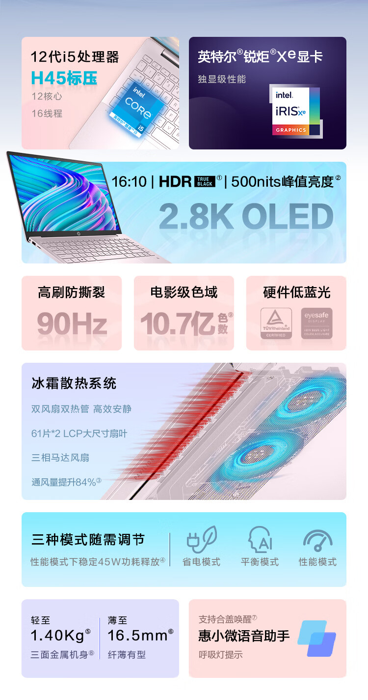 ¥17599.00惠普HP 星14 Pro 14英寸轻薄笔记本电脑(英特尔酷睿i5-12500H 2.8K 90Hz高分高刷屏 100%DCI-P3电影级色彩)仙女粉