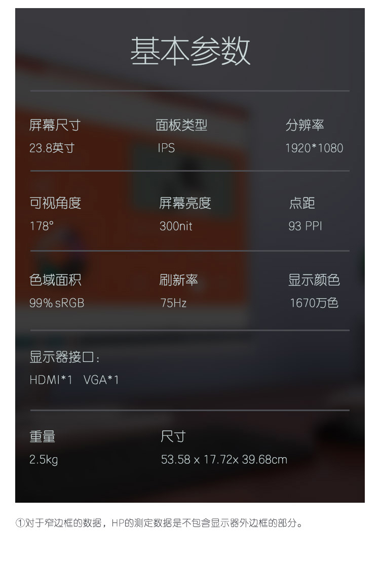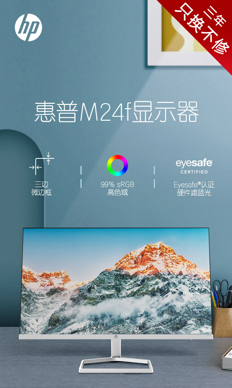 惠普(HP) 办公显示器 23.8英寸 FHD 75Hz IPS 物理防蓝光 电脑显示屏 M24F(带HDMI线) 自营