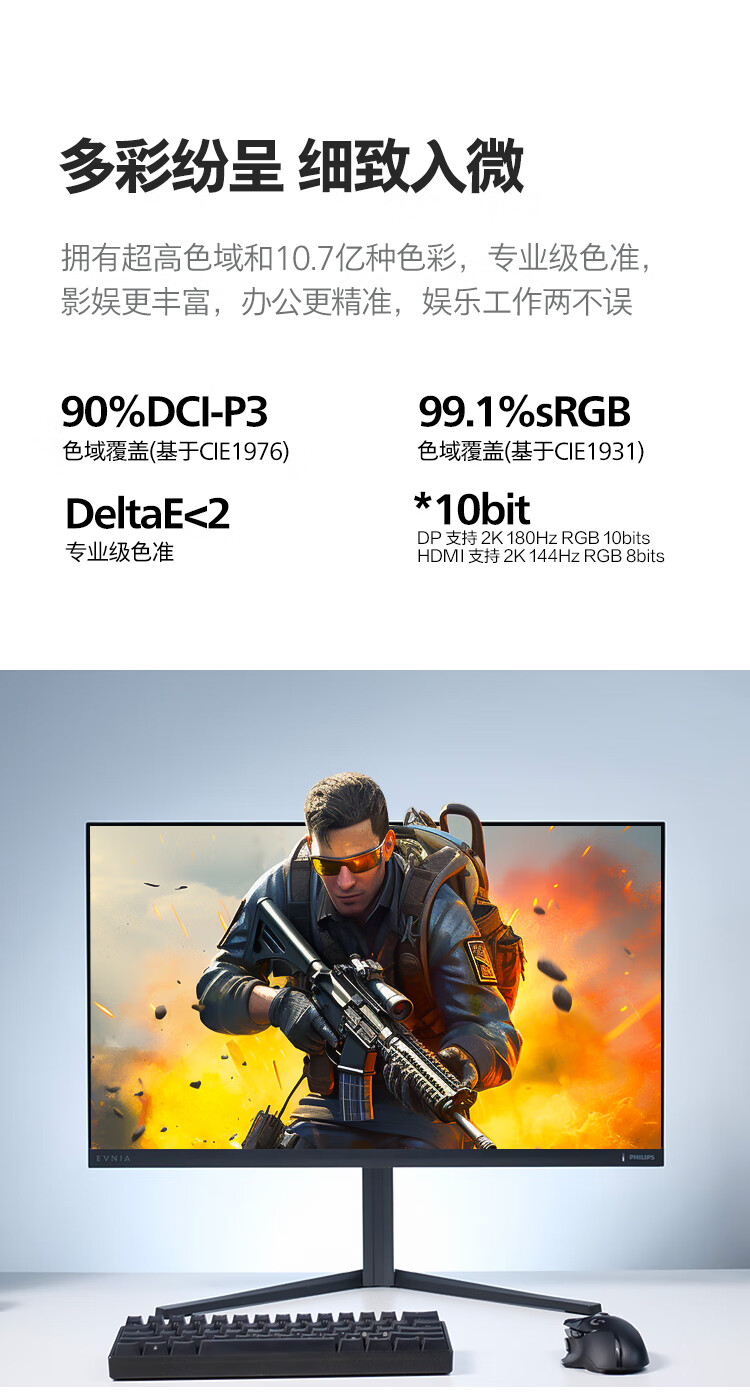 ¥2999.00飞利浦 27英寸2K原生180HzFastIPS 快速液晶1msHDR400 硬件防蓝光游戏氛围灯 EVNIA电竞显示器27M2N5510J