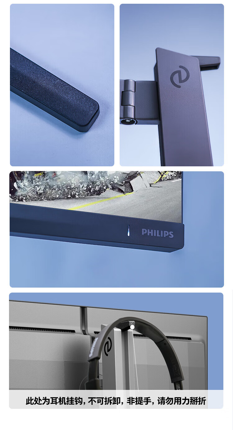 ¥899.00飞利浦 27英寸 IPS Type-C投屏 75hz 升降支架 可壁挂 游戏模式 办公电脑显示器 拼接显示屏 白色273E1EW