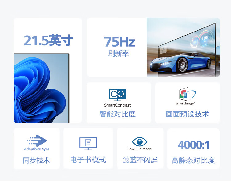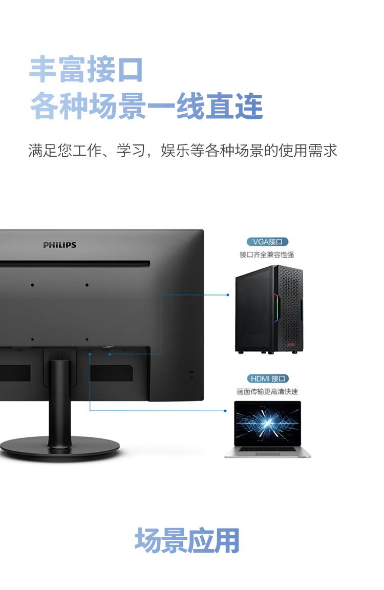 ¥699.00飞利浦 27英寸 2K 100Hz A-Sync 1ms 8bit 低蓝光 HDMI+DP 旋转升降 电竞游戏 办公显示器 显示屏27E1N5500LB
