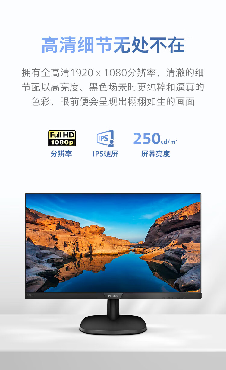 ¥10999.00飞利浦 23.8英寸 2K IPS 75Hz 117%sRGB 低蓝光 HDMI/DP 家用娱乐 游戏模式 高清办公显示器 拼接显示屏245E1