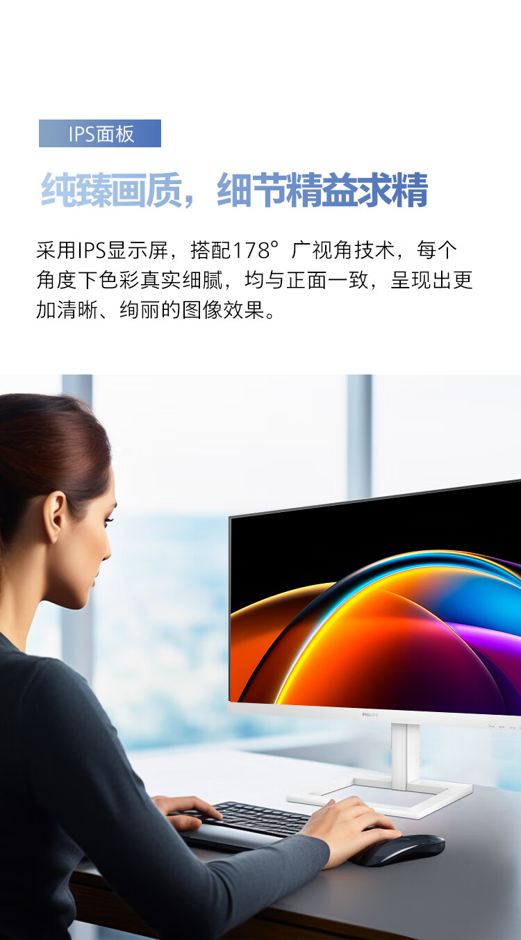 ¥4199.00飞利浦 27英寸 LGD-IPS悬浮全面屏 4K 10bit HDR400 Type-C65W 99.9%srgb 旋转升降专业设计办公显示器 279C9