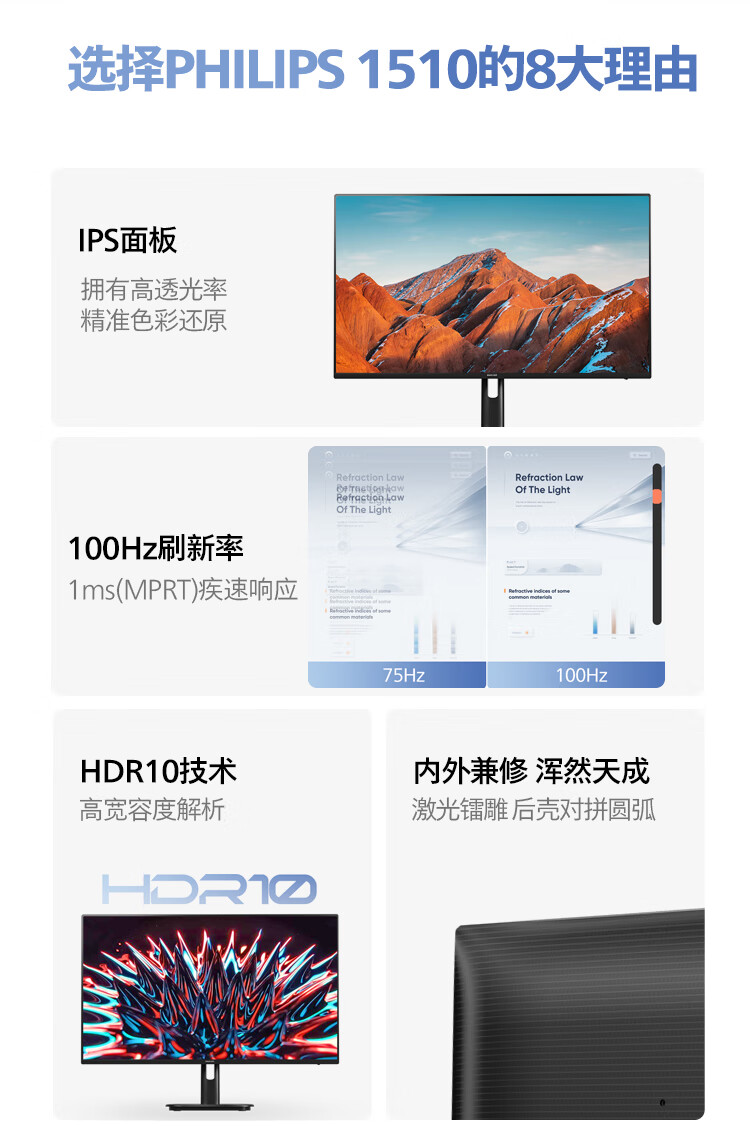 ¥1799.00飞利浦 31.5英寸 2K IPS 白色直播大屏 10bit 75Hz FreeSync 低蓝光 HDMI/DP 办公显示器 娱乐显示屏 325E8SW