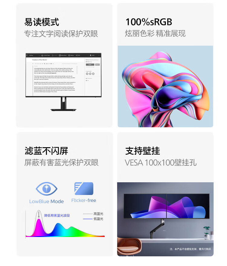 ¥1899.00惠普(HP) 办公显示器 23.8英寸 FHD 75Hz IPS 物理防蓝光 电脑显示屏 M24F(带HDMI线)