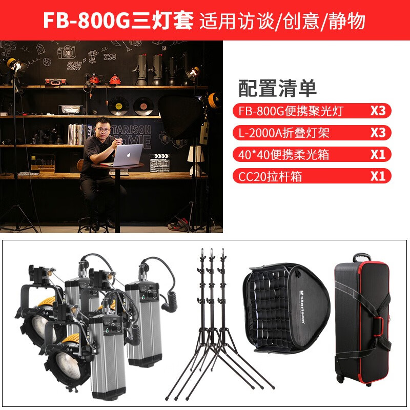 鑫威森(starison) FB-800G LED便携式影视聚光灯 室外采访 80W摄像摄影补光灯 FB-800G采访三灯套装 自营
