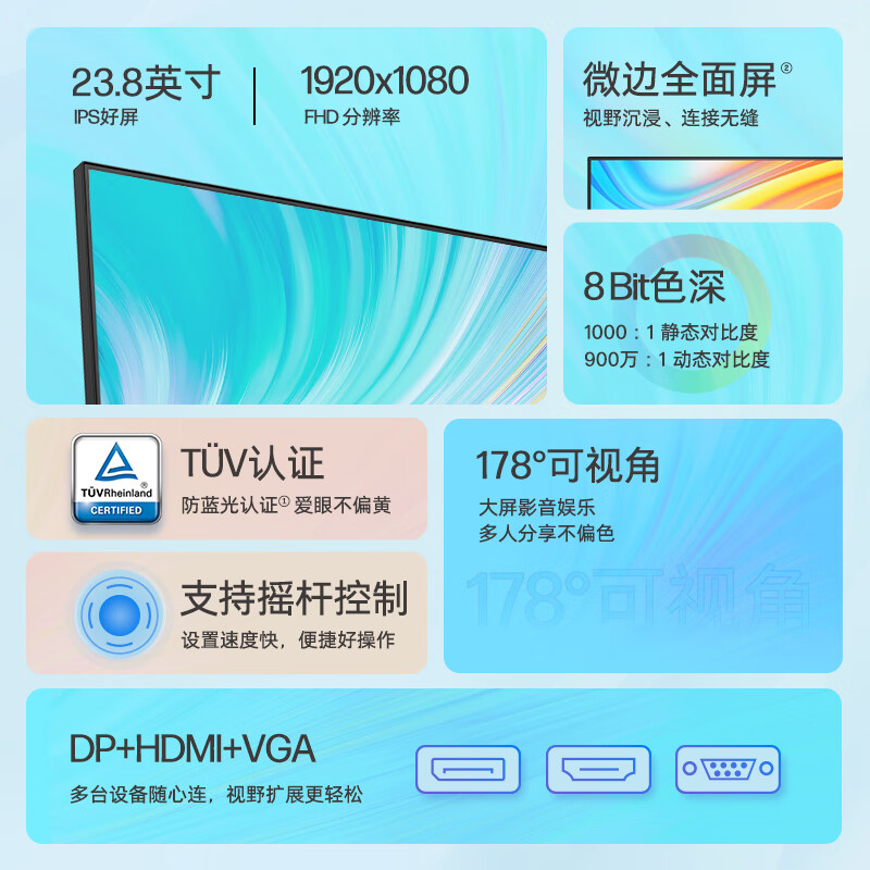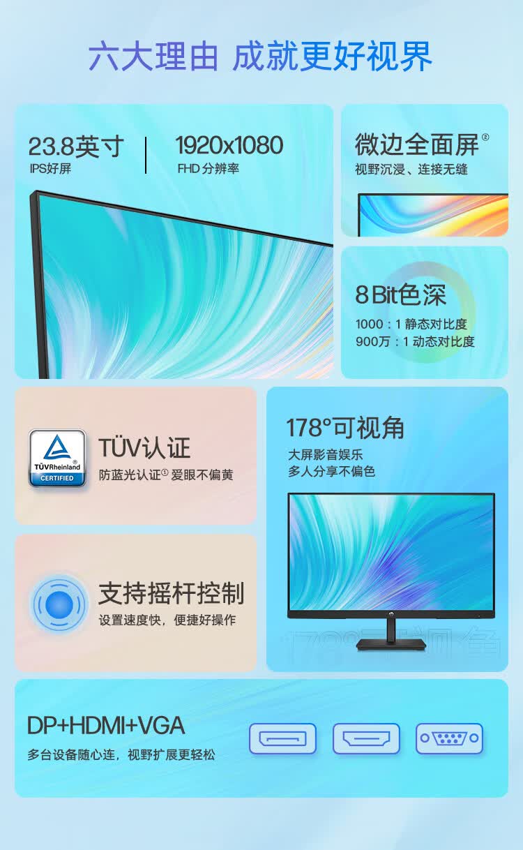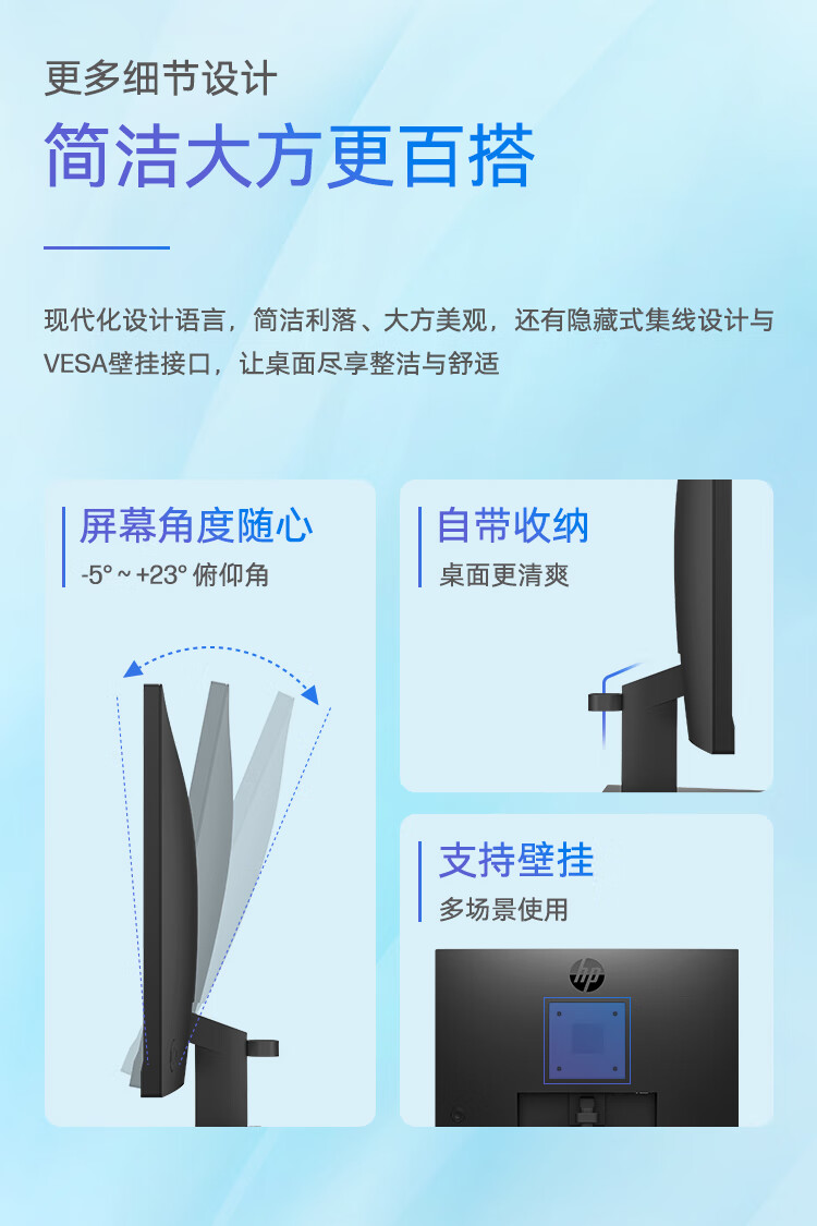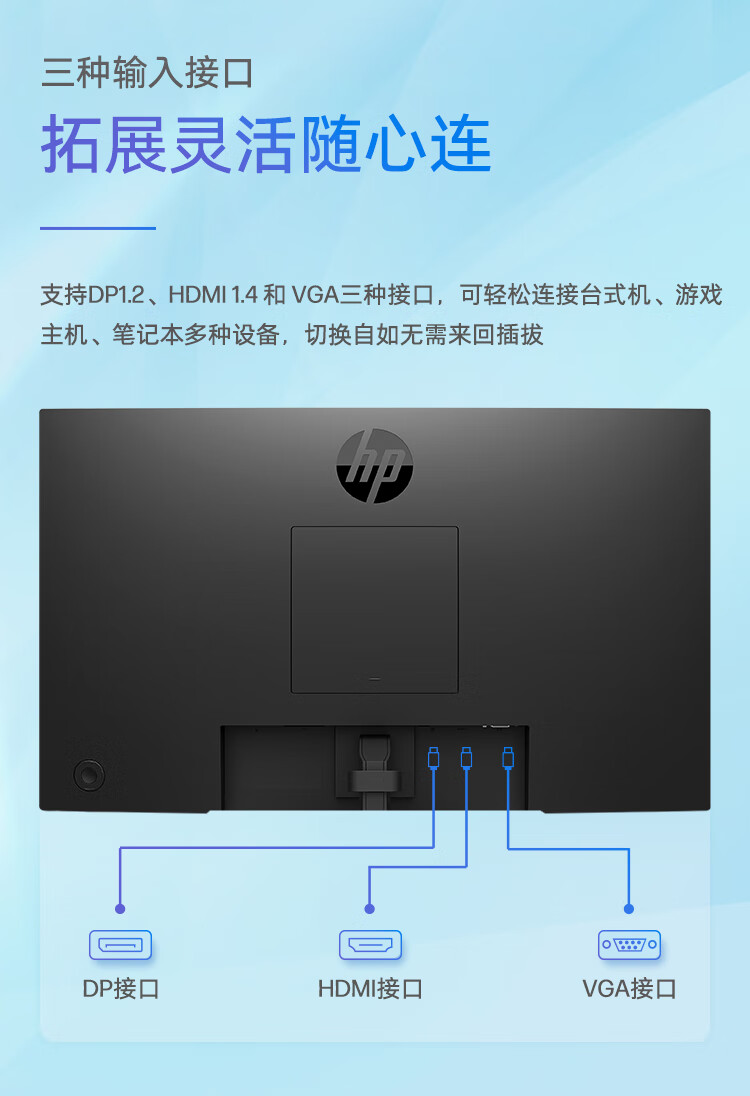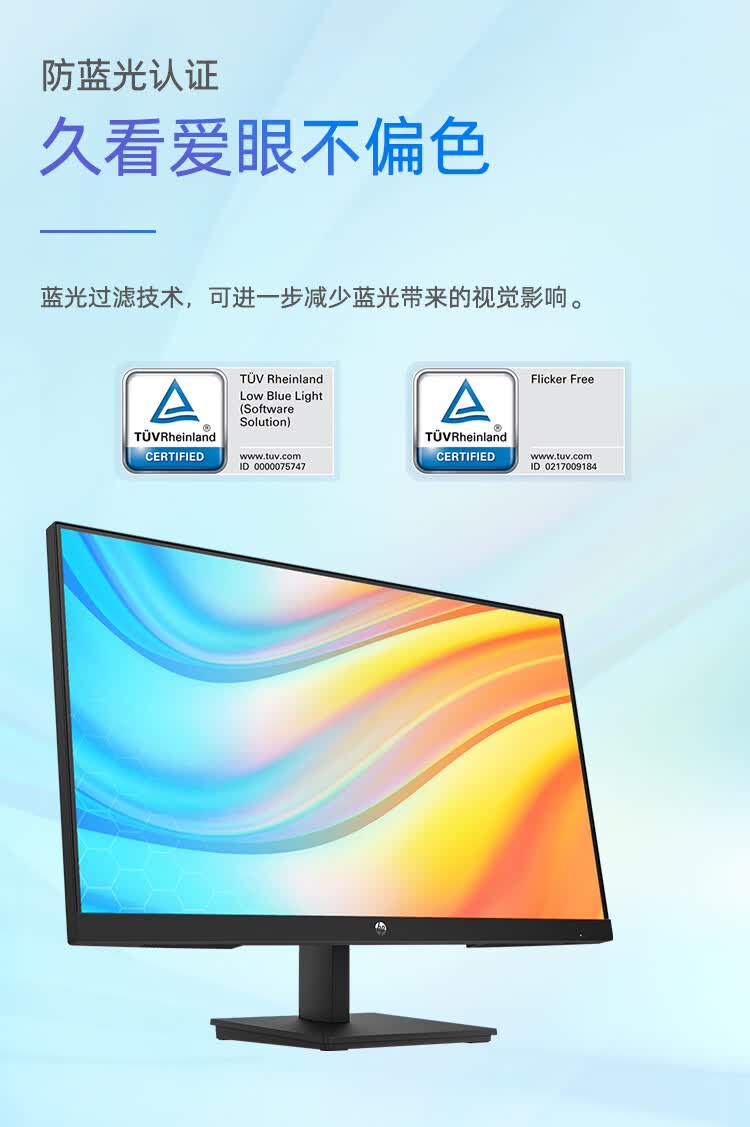 惠普(HP)电脑办公 23.8英寸 FHD 75Hz FreeSync IPS TUV认证低蓝光爱眼电脑显示屏 V24IE G5 自营