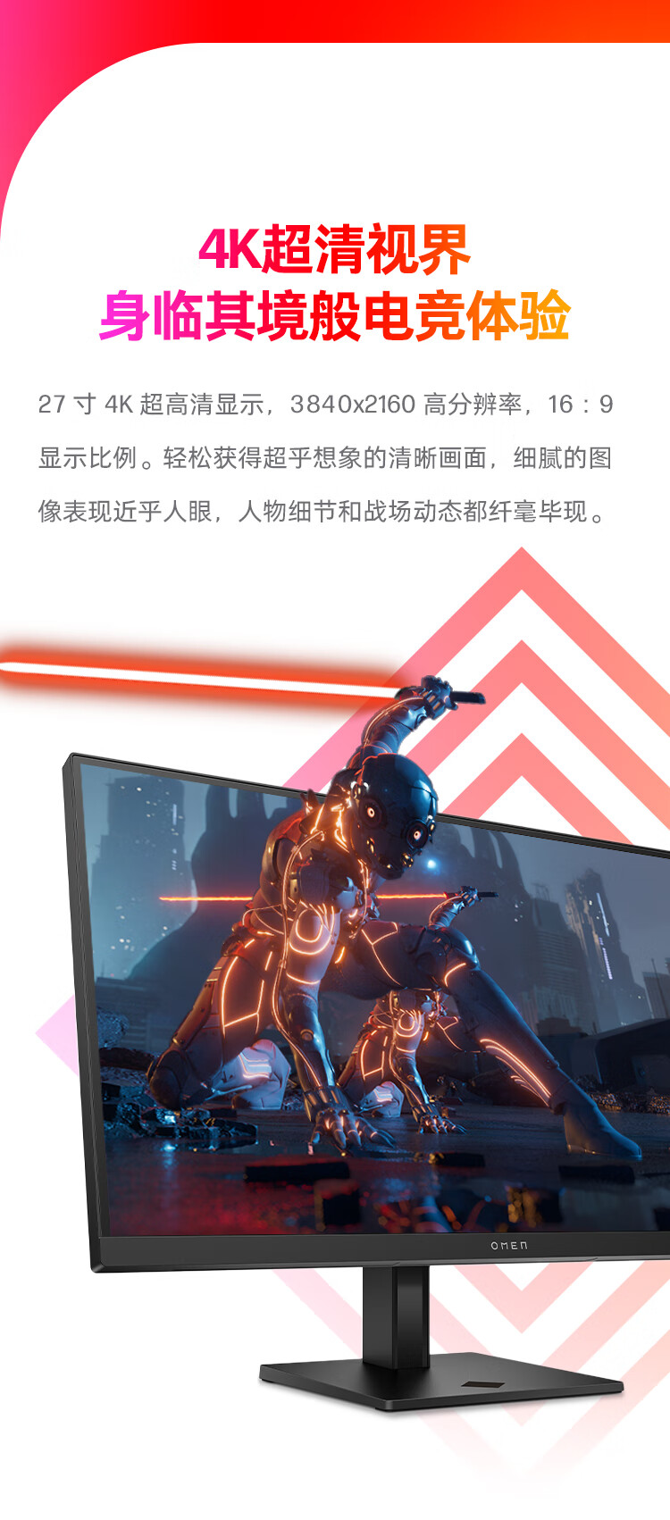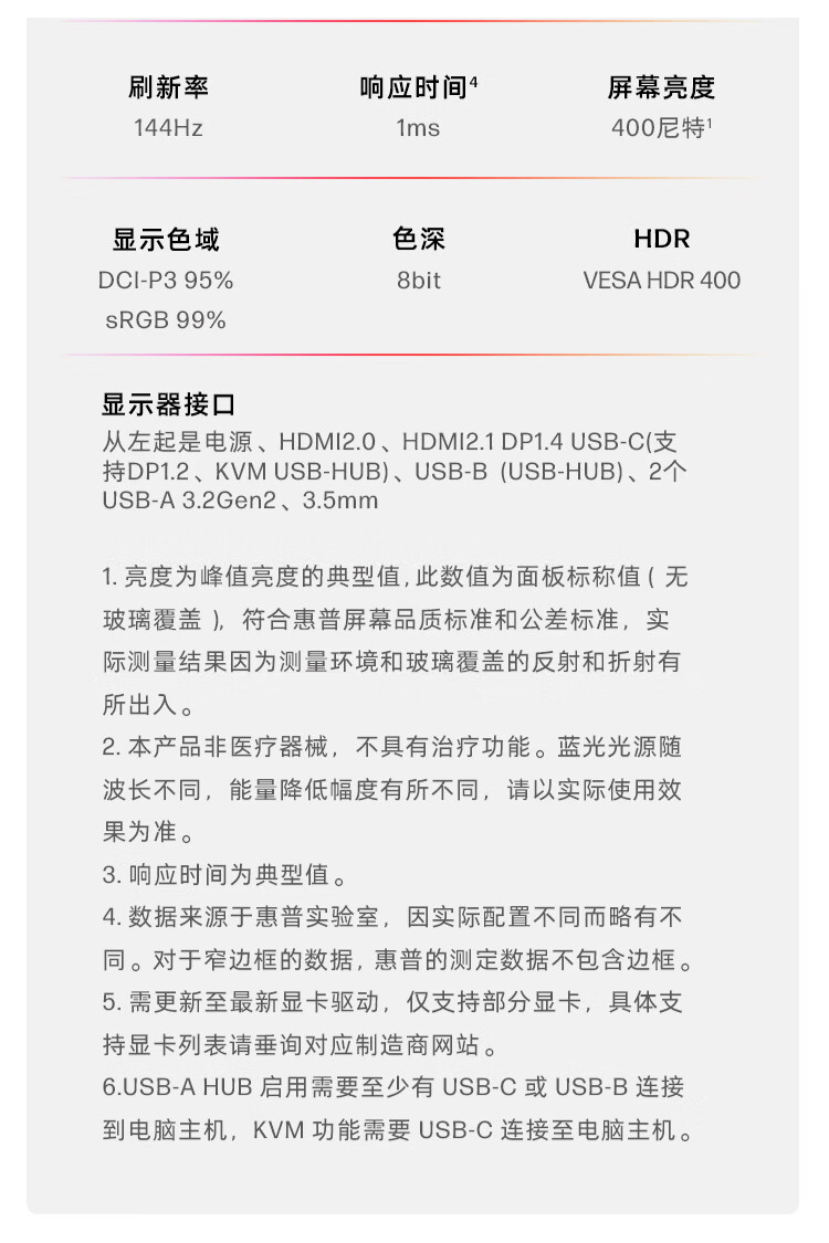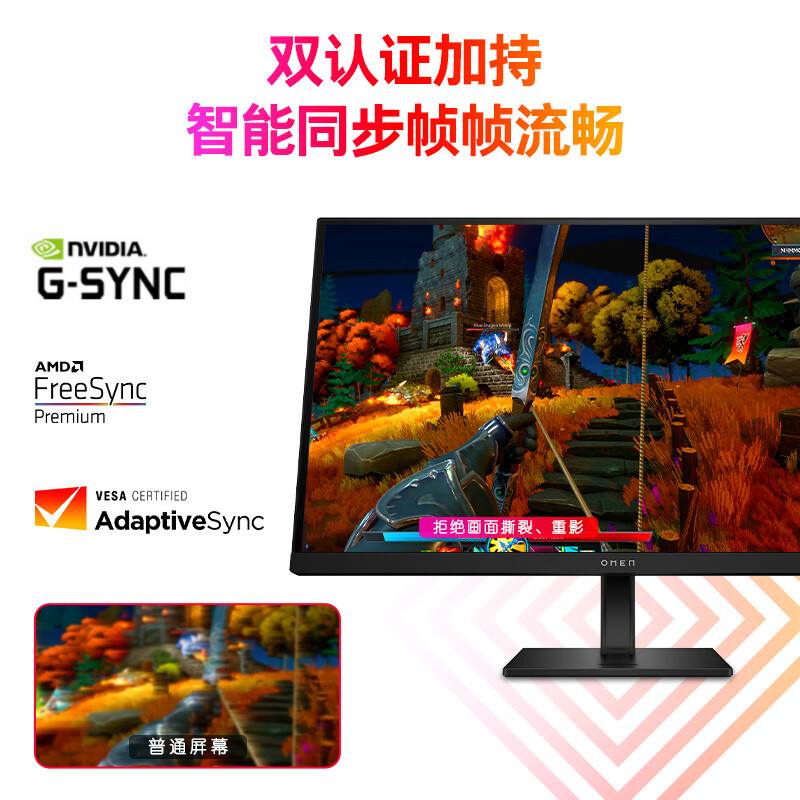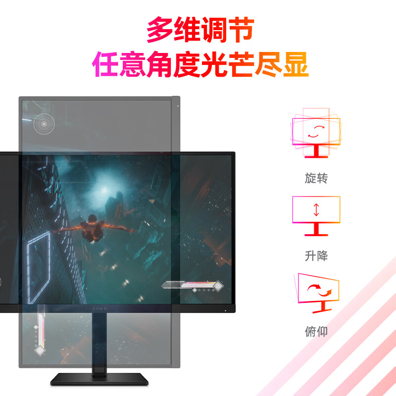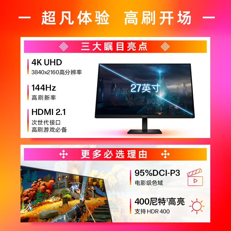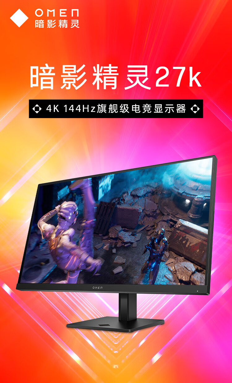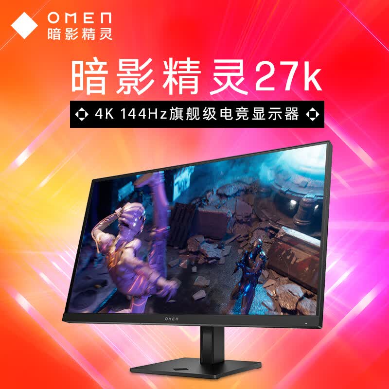 惠普(HP)暗影精灵电竞显示器 27英寸4K UHD 144Hz高刷 FreeSync TUV认证旋转升降电脑显示屏 27k 自营