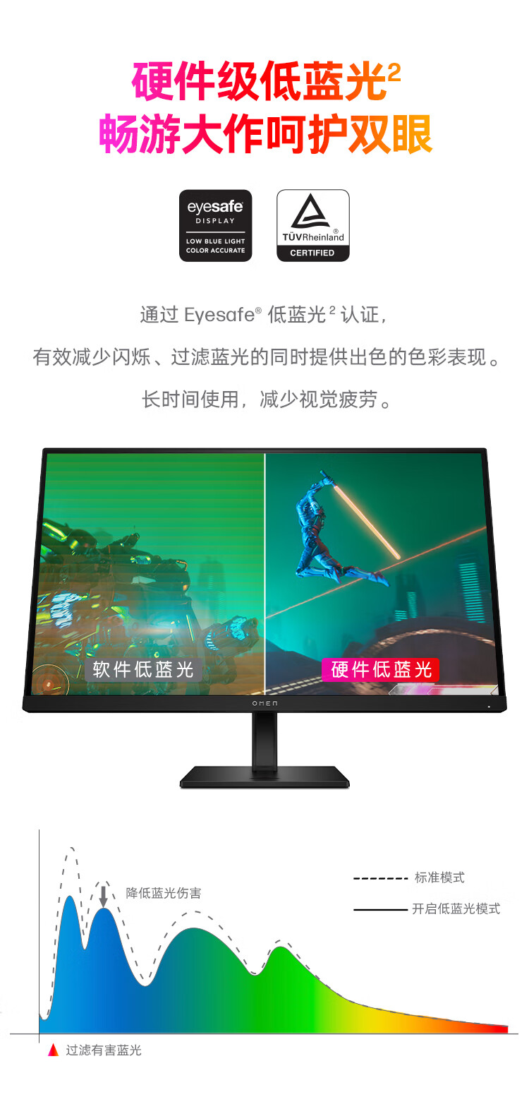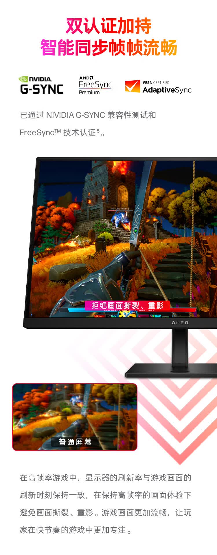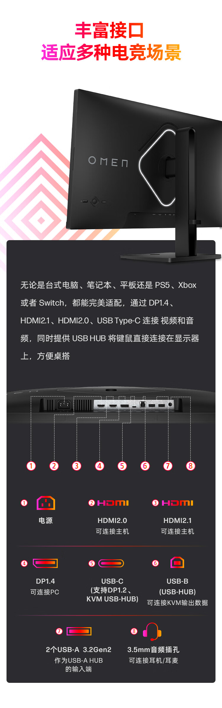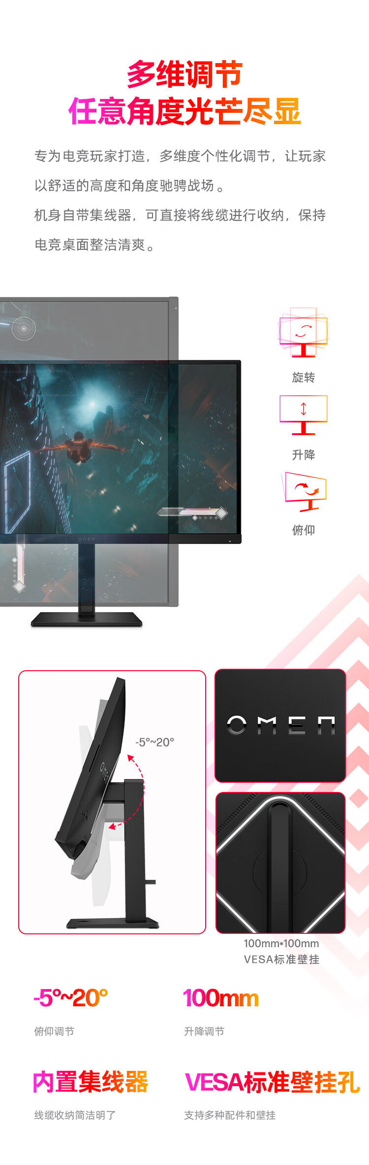 惠普(HP)暗影精灵电竞显示器 27英寸4K UHD 144Hz高刷 FreeSync TUV认证旋转升降电脑显示屏 27k 自营