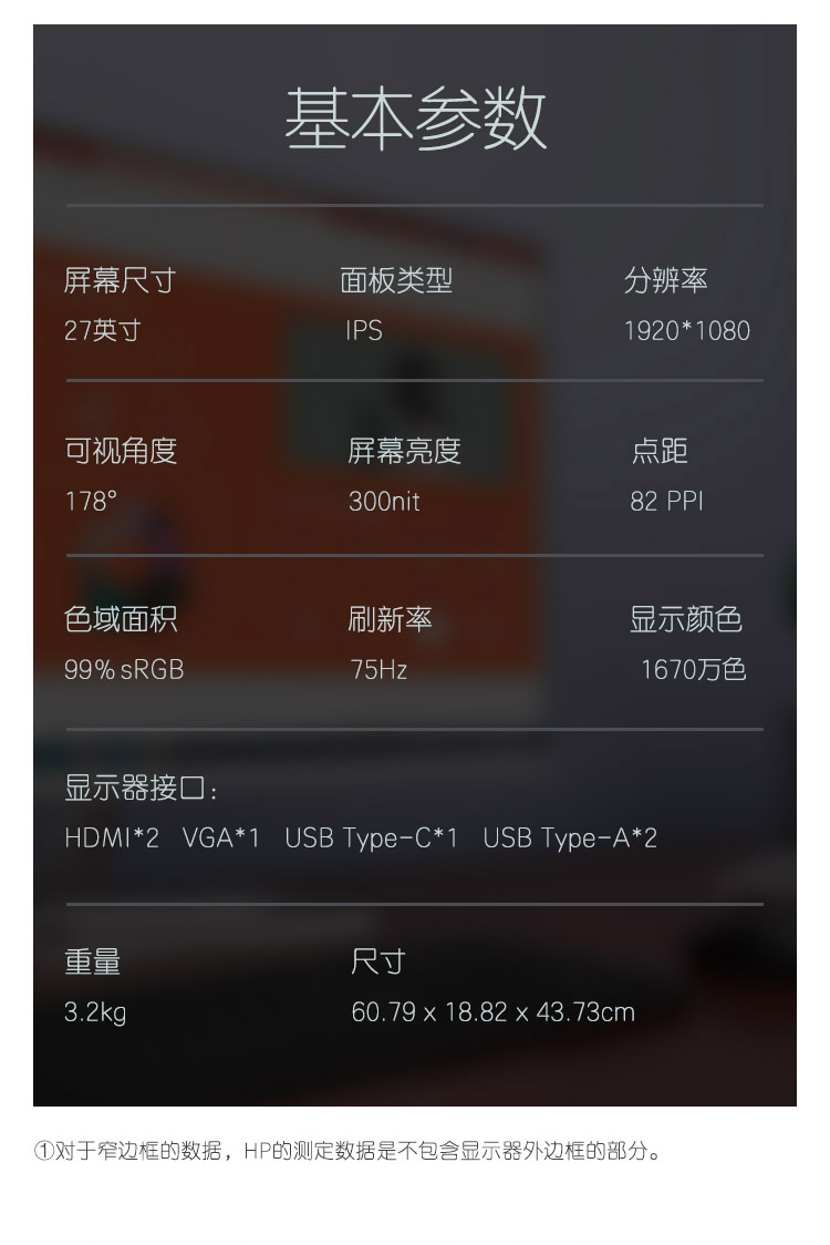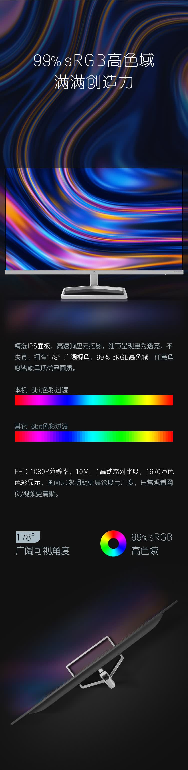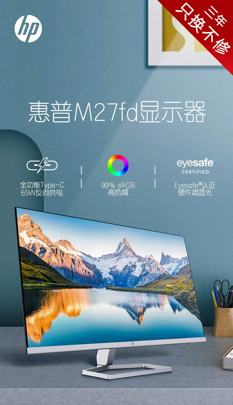 惠普(HP) 办公显示器 27英寸 FHD 75Hz IPS 物理防蓝光 Type-C反向供电65W 电脑显示屏M27FD(带HDMI线) 自营