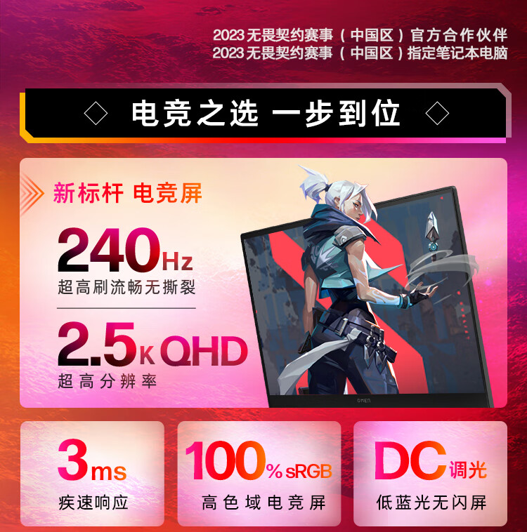 ¥1799.00惠普(HP)暗影精灵电竞显示器 27英寸4K UHD 144Hz高刷 FreeSync TUV认证旋转升降电脑显示屏 27k