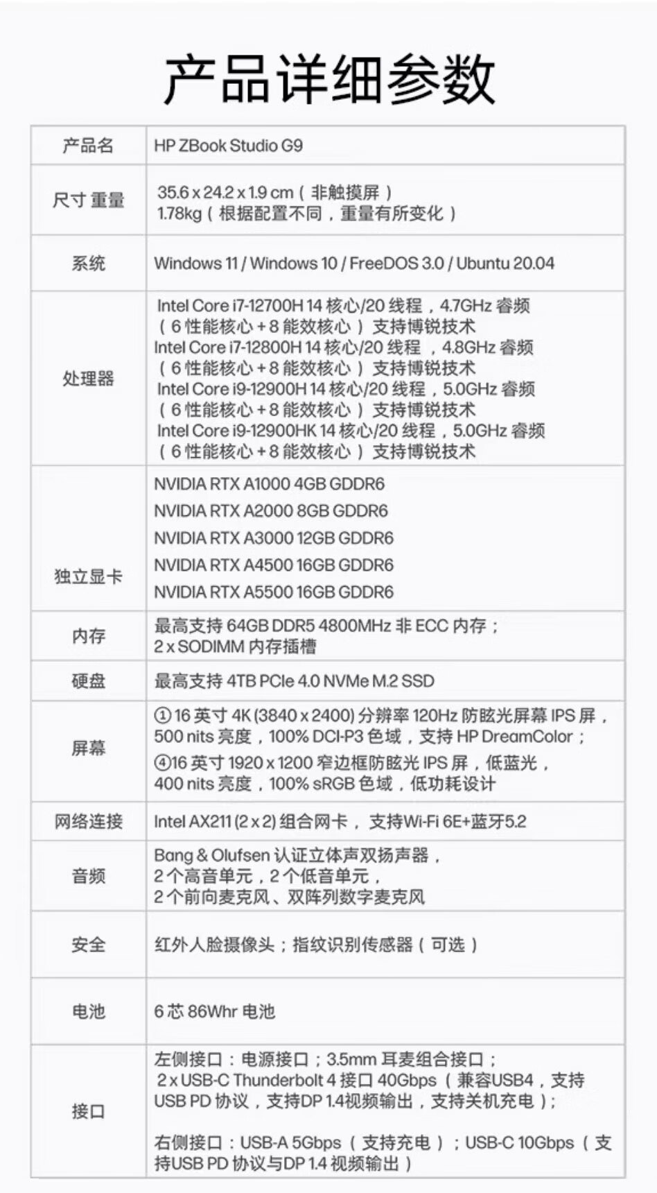 惠普(HP)ZBook Studio G9 16英寸移动图形工作站 i7-12700H/16G/1TSSD/RTXA1000 4G/FHD屏/Win11H 自营
