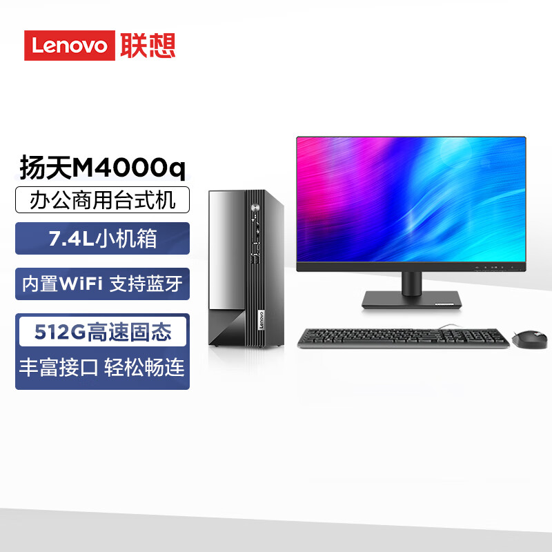 ¥3798.00联想(Lenovo)商用办公台式机电脑主机 扬天M4000q 英特尔处理器(G6900 8G 512G SSD Win11)21.45英寸