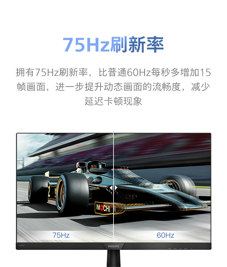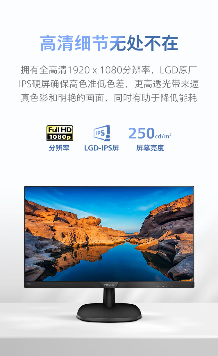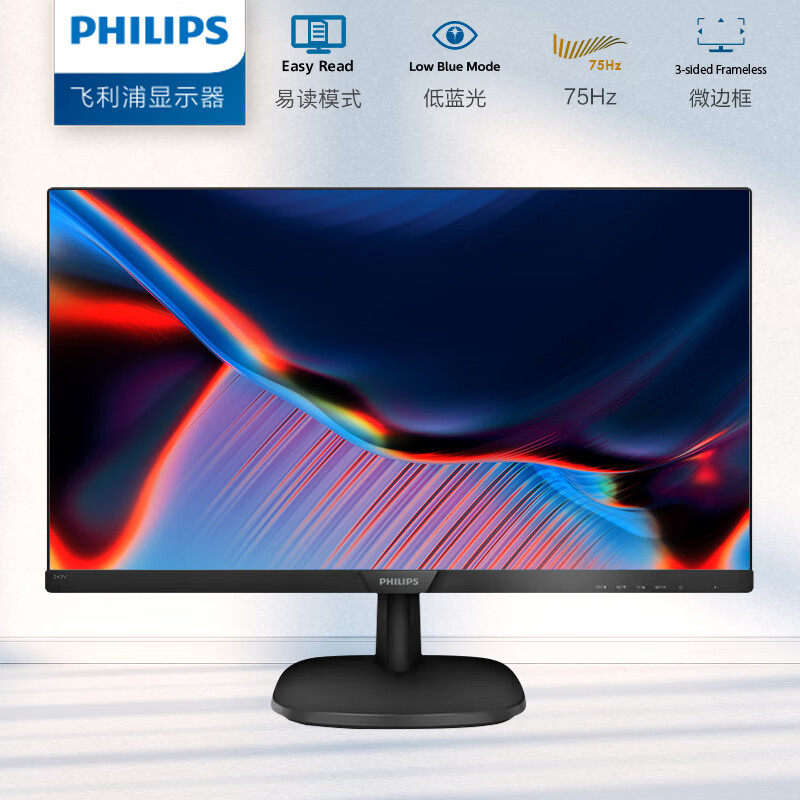 飞利浦 23.8英寸 LGD-IPS FHD 75Hz TUV认证低蓝光 VGA/DVI/HDMI 网课 办公显示器 商务电脑显示屏 243V7QDSB 自营