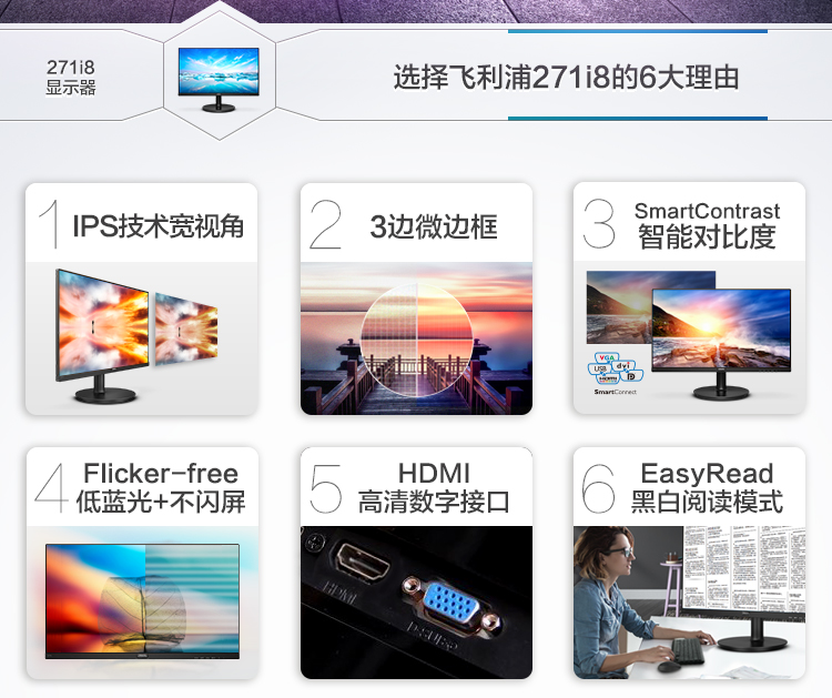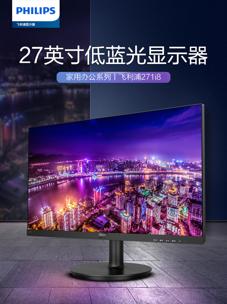 ¥1799.00飞利浦 27英寸 LGD-IPS悬浮全面屏 2K 超薄 75Hz 131%sRGB广色域金属支架底座高清设计娱乐办公显示器 275E9