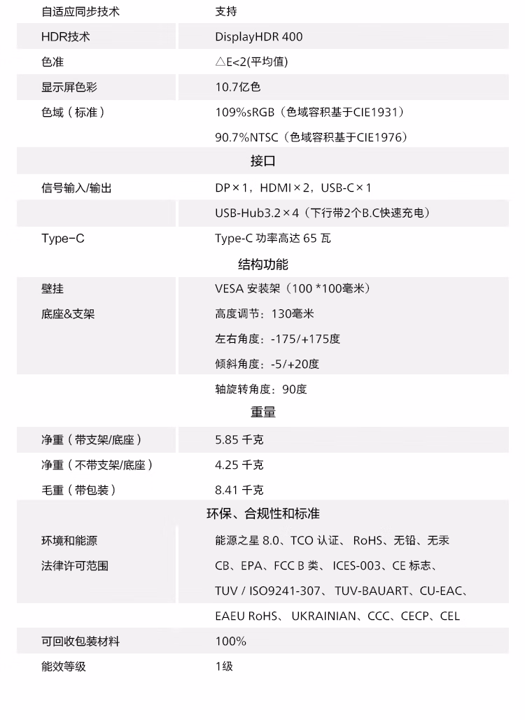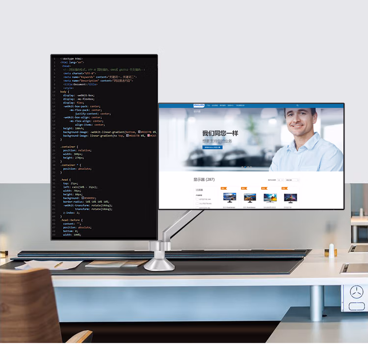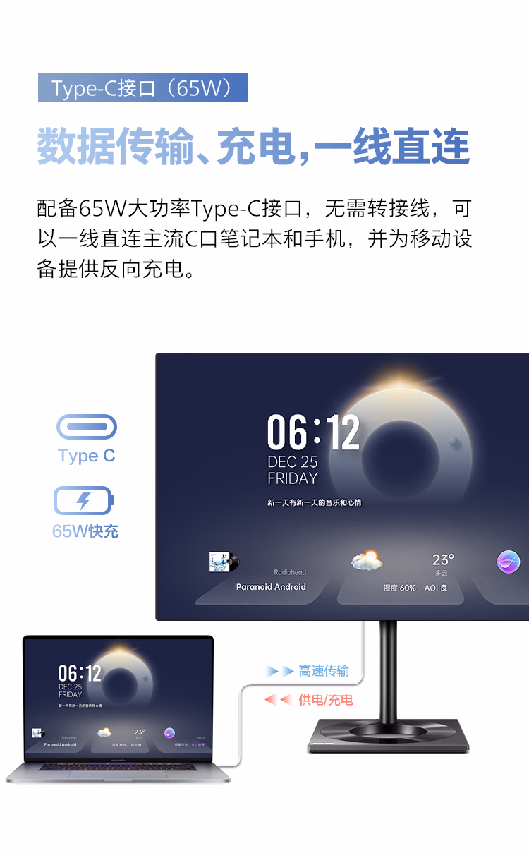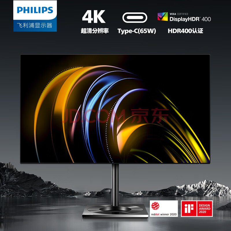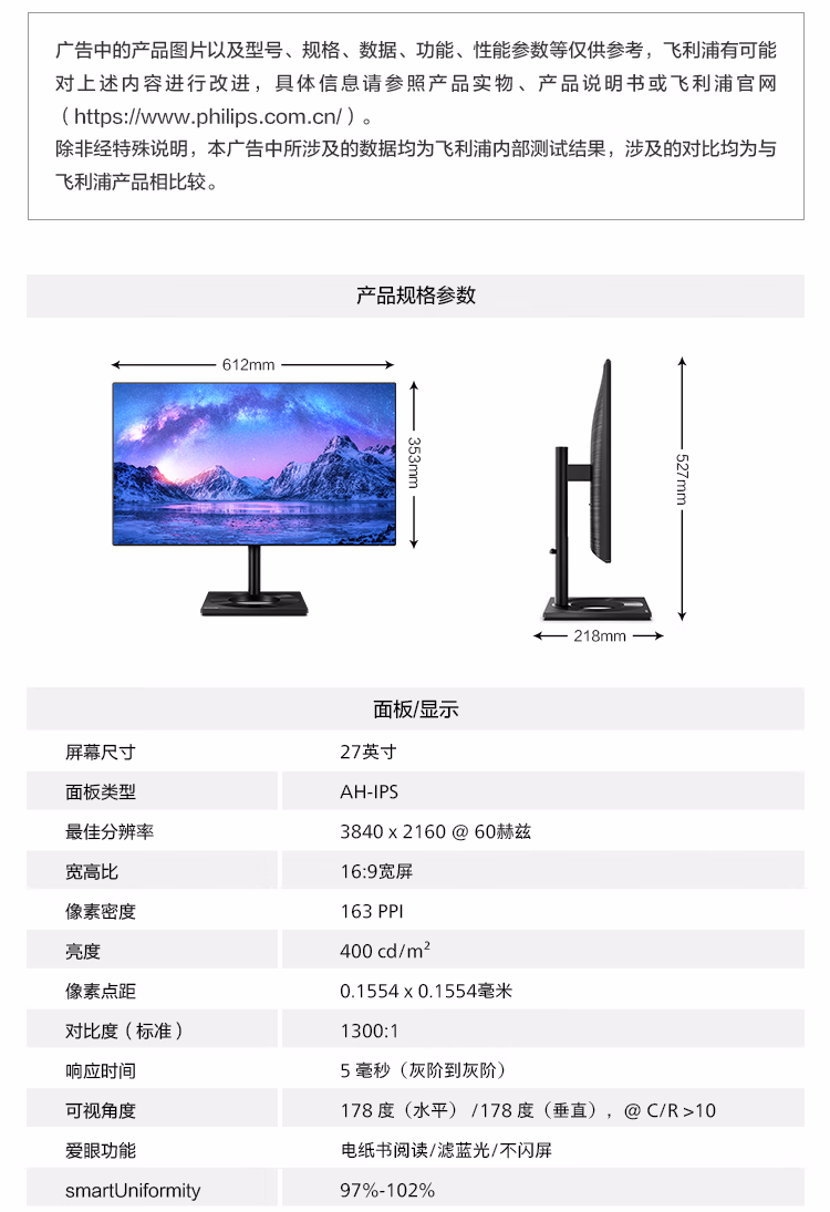 飞利浦 27英寸 LGD-IPS悬浮全面屏 4K 10bit HDR400 Type-C65W 99.9%srgb 旋转升降专业设计办公显示器 279C9 自营